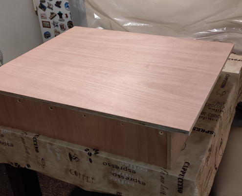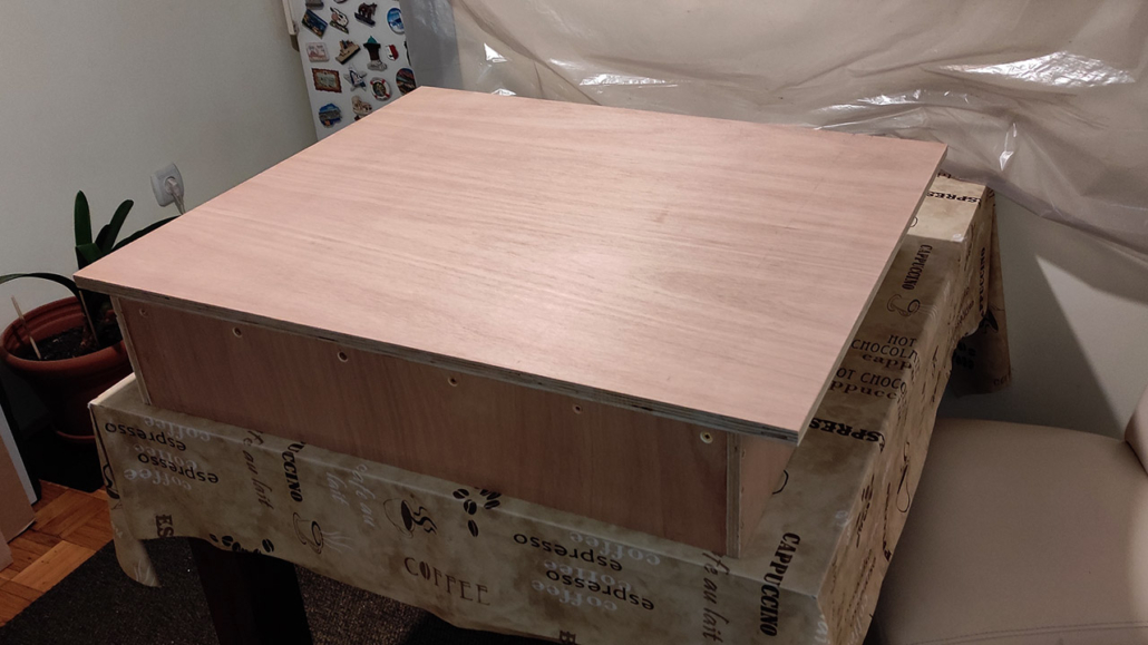 Jedan od prvih stolarskih projekata, radna ploča sa niskim okvirom koja bi se koristila preko kuhinjskog stola, a eventualno može da se kombinuje sa Wolkraft radnim stolom pored za obradu većih materijala. Na radnoj površini su predviđene i rupe za razne stege – alate 20mm.